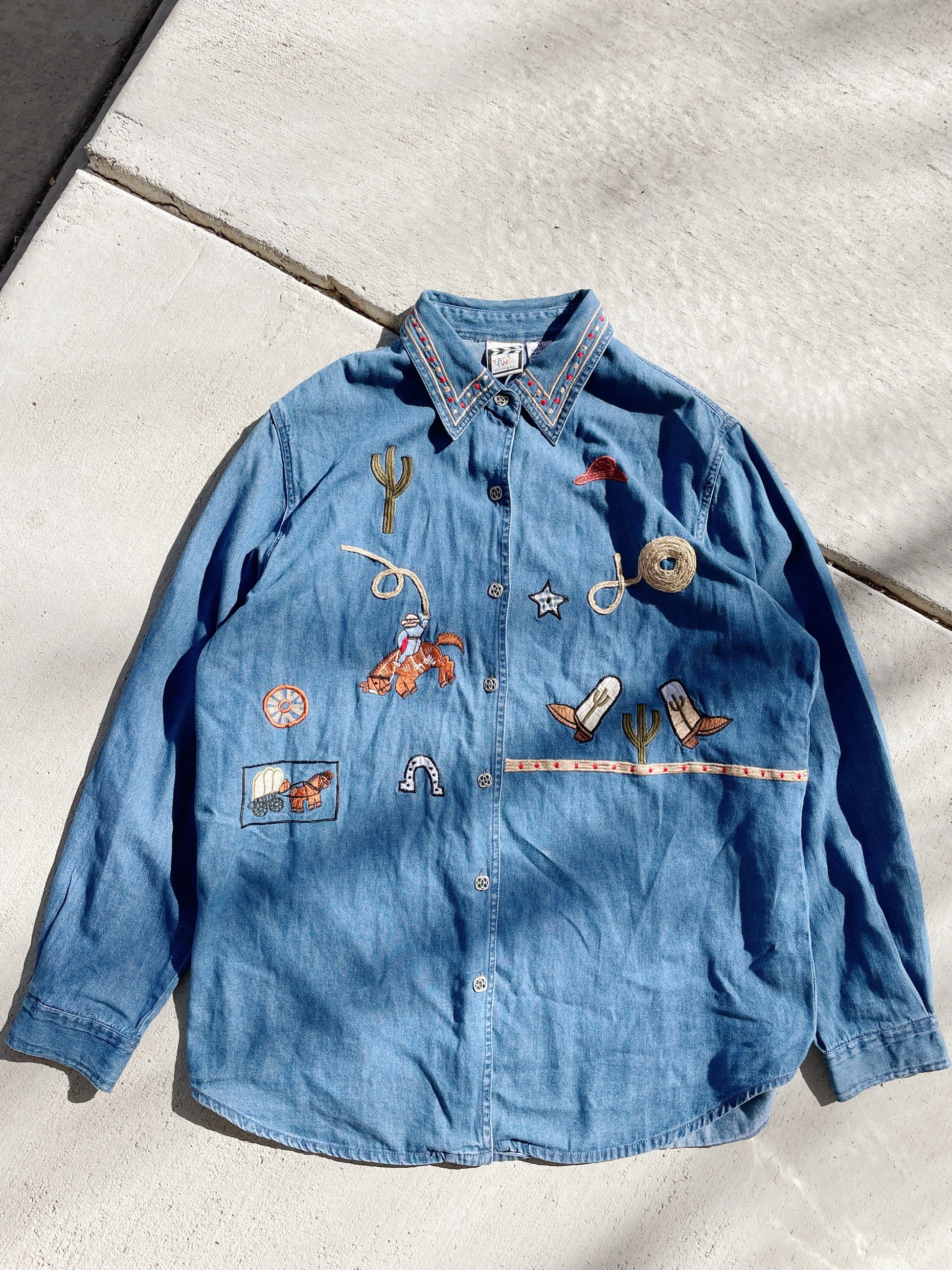 Vintage Cowboy Embroidered Denim Shirt (L/XL)