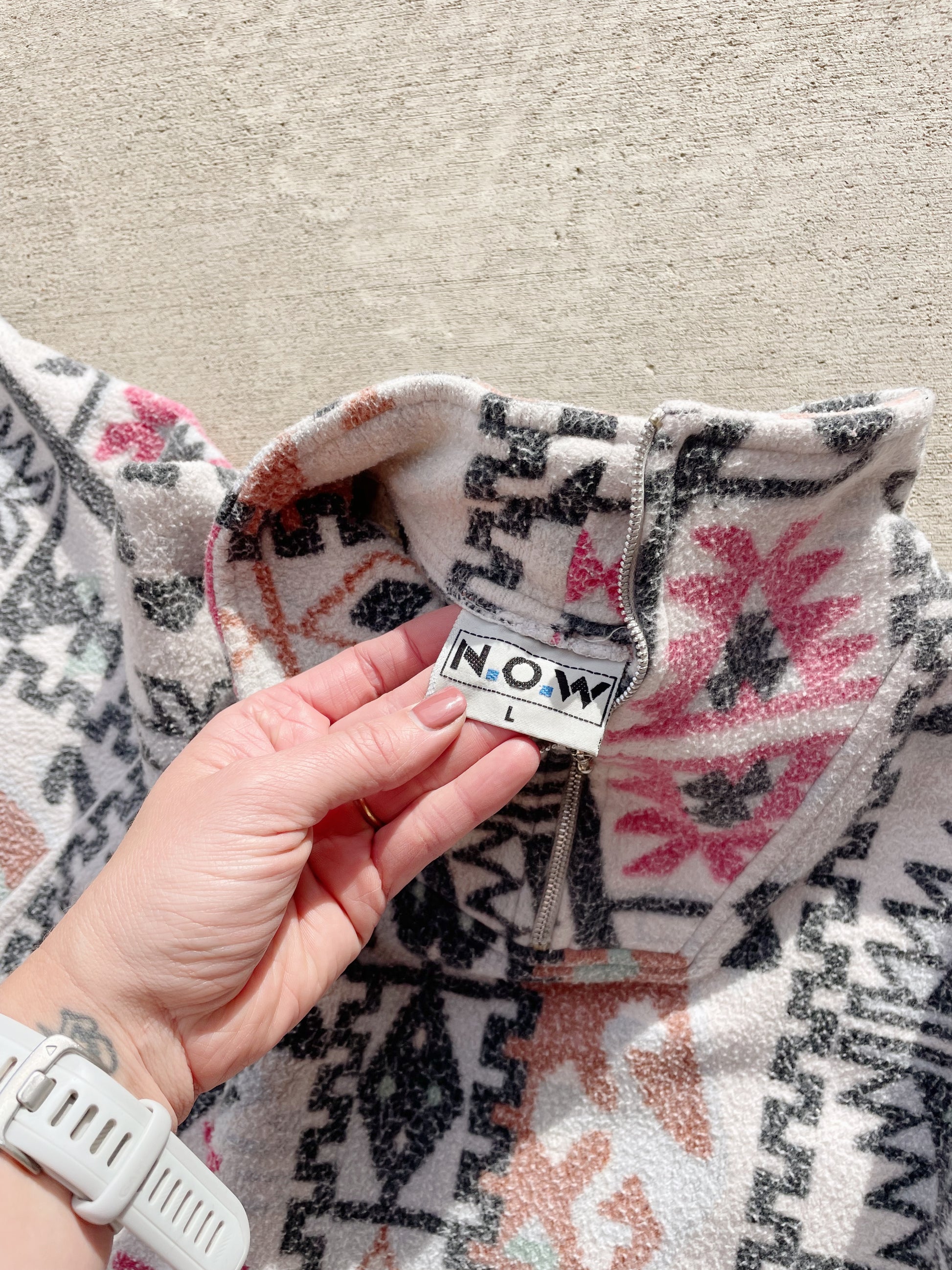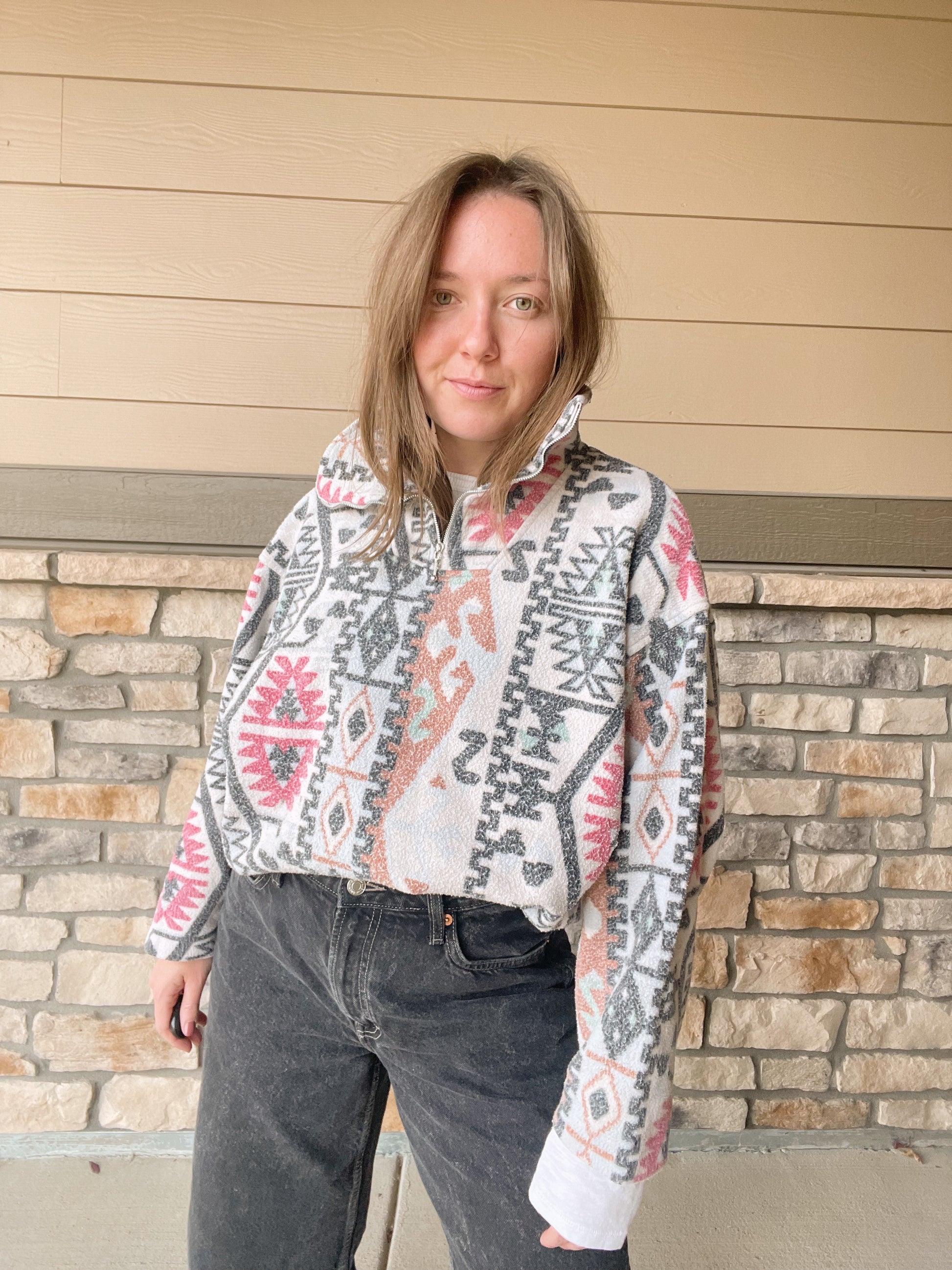 Vintage Geometric Patterned 1/4 Zip Fleece (L)